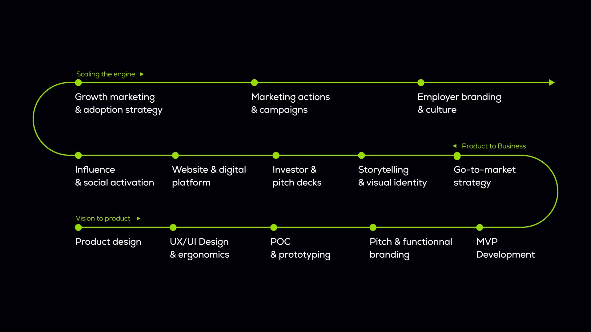 En tant qu’agence marketing pour les startups axée sur la performance, nous développons une méthodologie éprouvée de Market-Pull. En cartographiant votre marque comme un écosystème dynamique, nous alignons votre identité visuelle, votre expérience utilisateur (UX/UI) et votre storytelling d’innovation directement sur vos objectifs business. Ce processus structuré garantit que chaque actif que nous créons, du design de votre MVP à votre pitch deck investisseur, accélère votre time-to-market et maximise l’adoption par les utilisateurs.