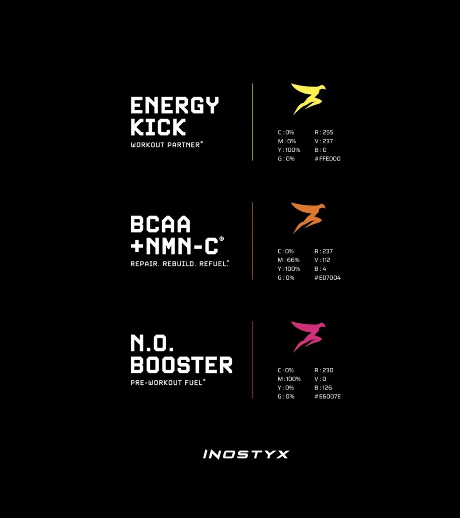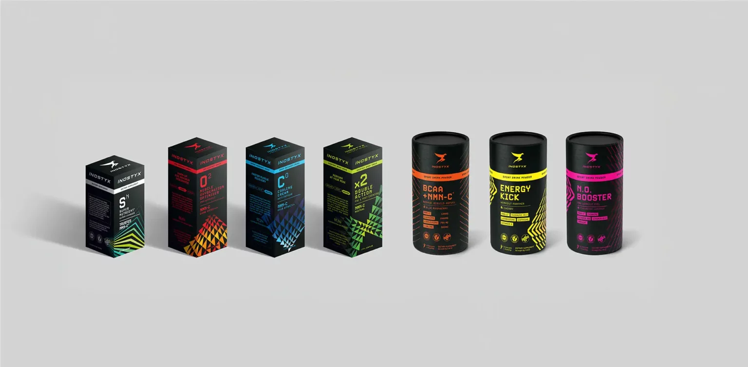 Le design des packagings Inostyx est né d’une direction artistique affirmée. Les visuels audacieux et les couleurs vibrantes ont été pensés pour traduire l’énergie et le mouvement propres au monde du sport.